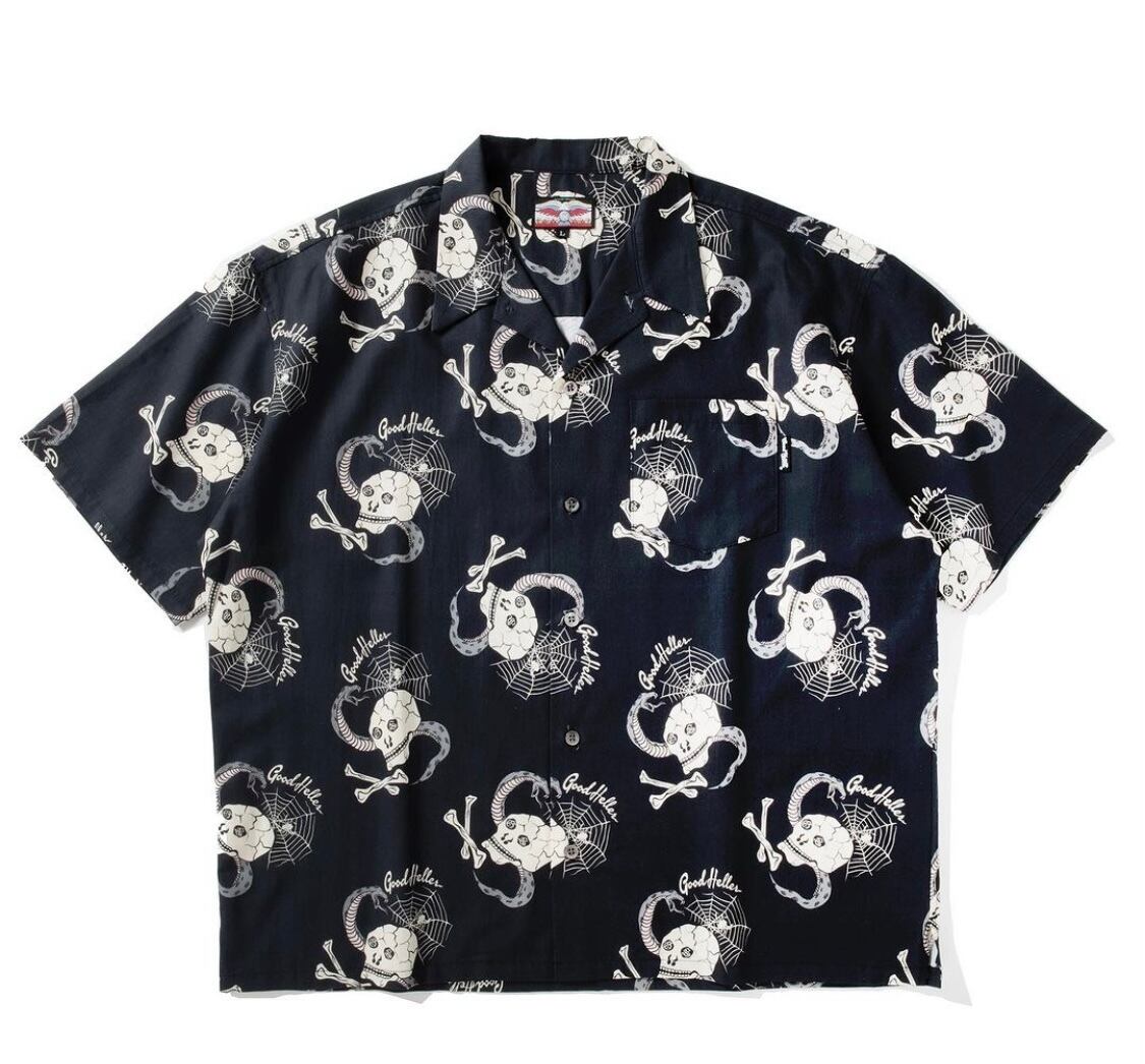 GOODHELLER " SPIDER WEB,SKULL&SNAKE ALL OVER PATTERN S/S SHIRT " Black