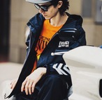 ブランドPhirosophyである「ONE WAY LIFE」とアイコンでもあるアローデザインを、リフレクターシートで圧着し暗闇での安全性を高める。