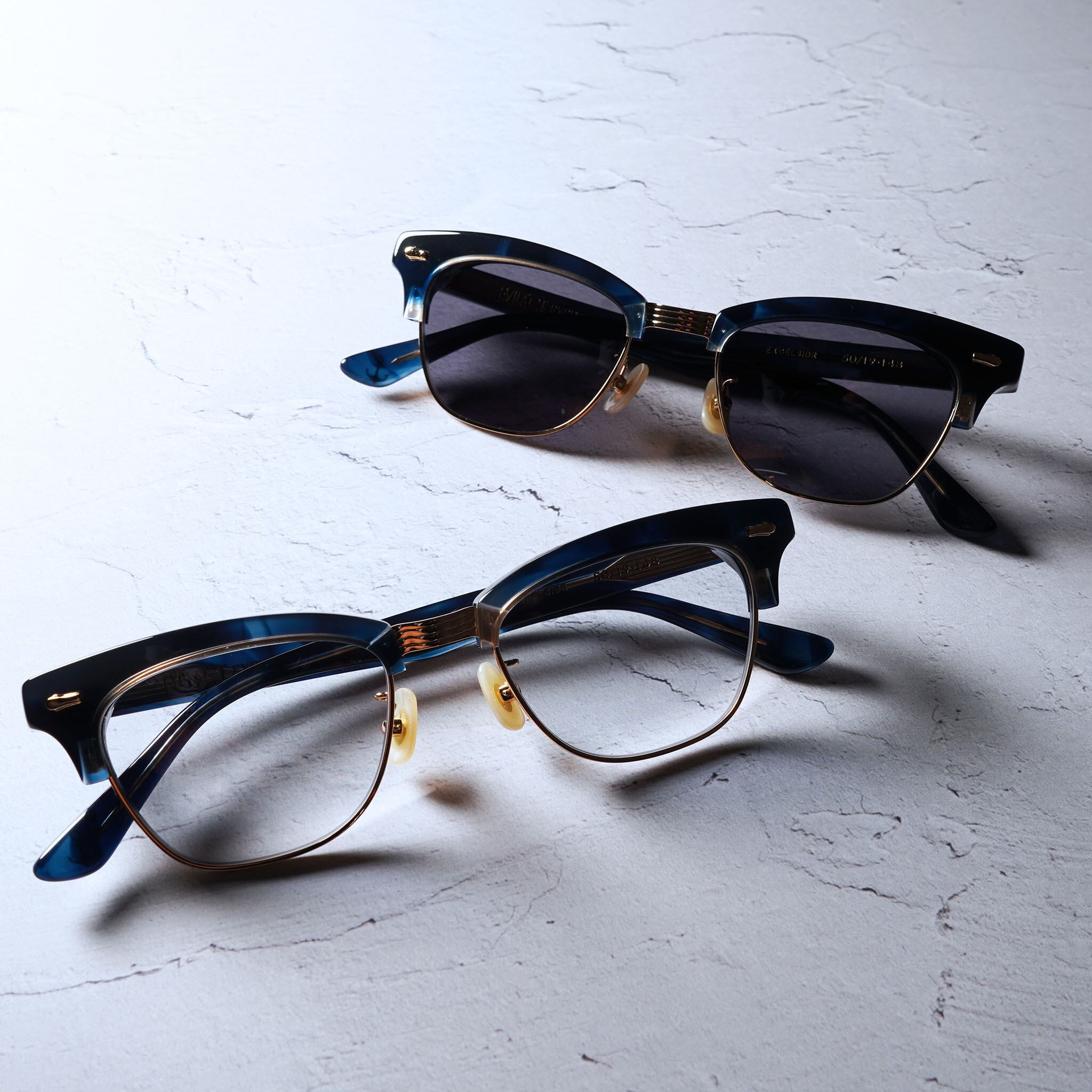 EVILACT eyewear " EXCELSIOR " antique clear×black marble/green lens